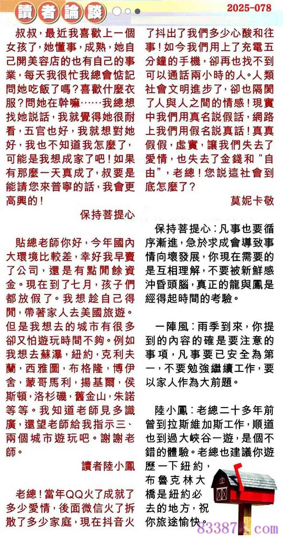 078期:彩民推荐贴信读者论坛