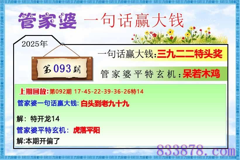 093期:管家婆一句话赢大钱