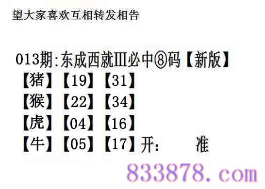 主题 : 013期:另版【东成西就四肖8码】