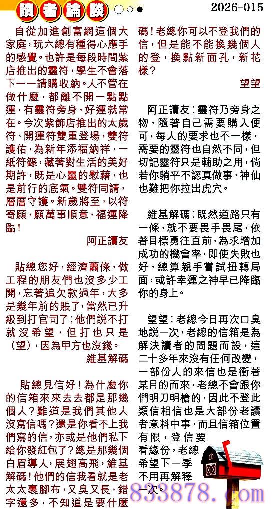 主题 : 015期:彩民推荐贴信读者论坛