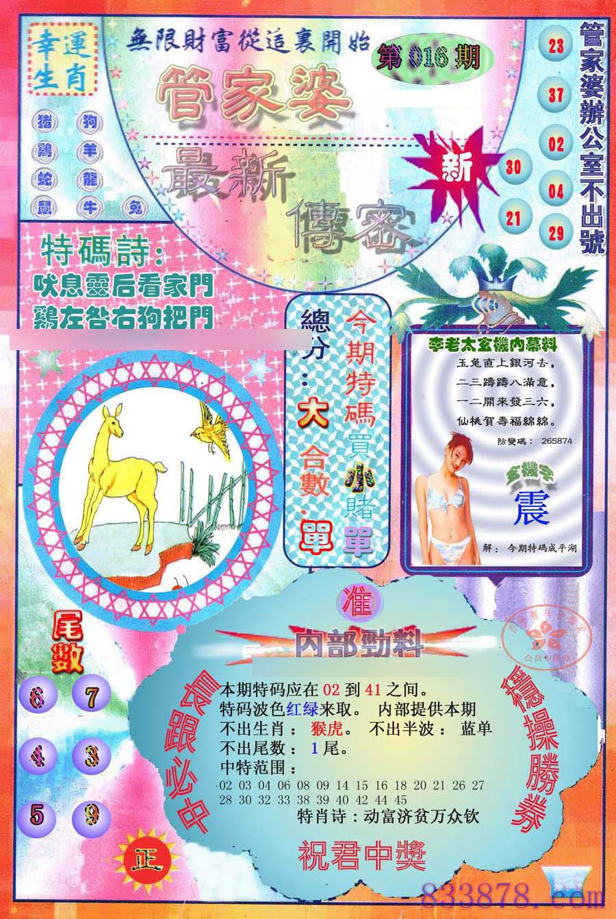 主题 : 016期:最新管家婆传密