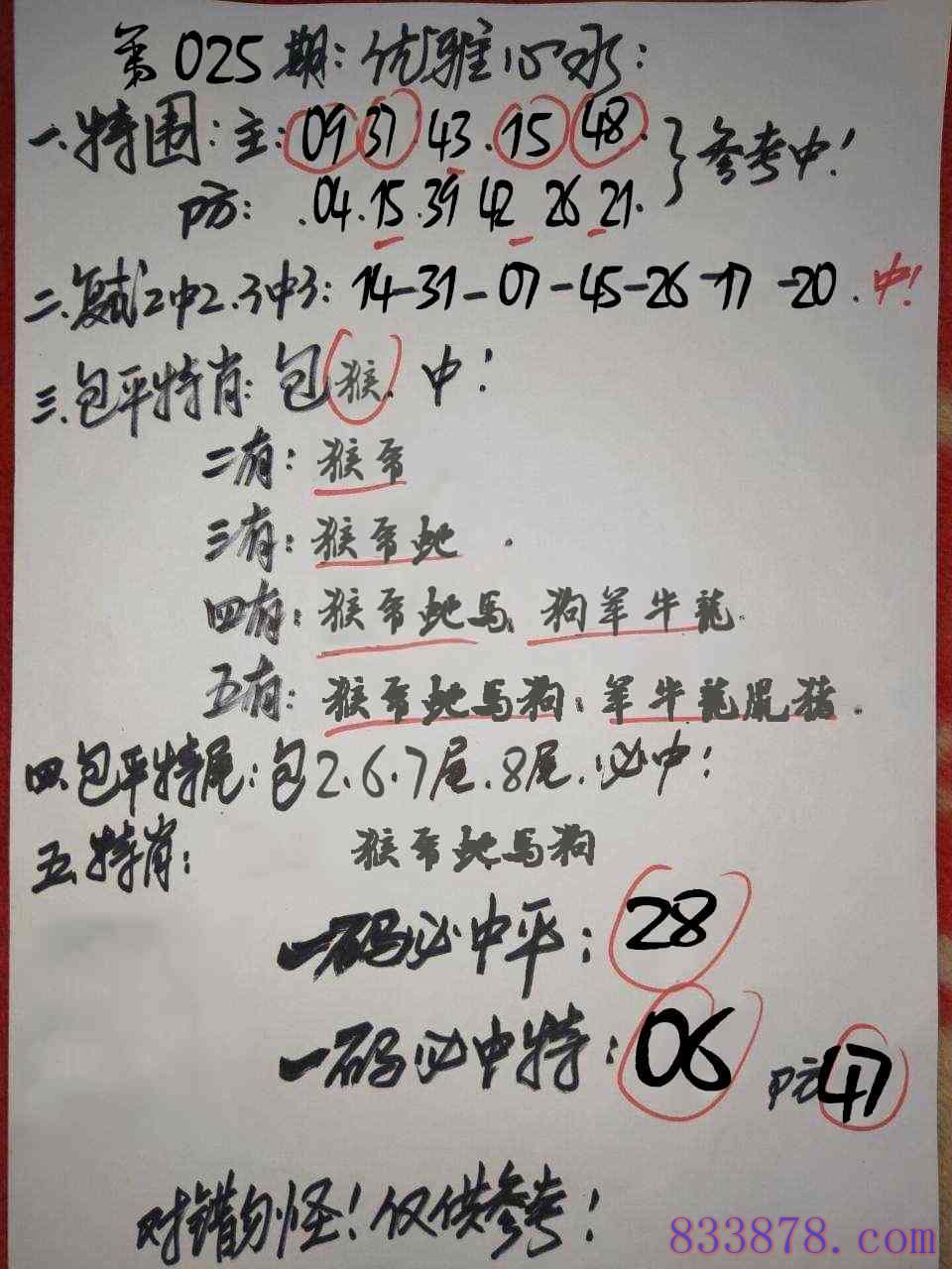 025期:优雅心水